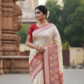 Pure Banarasi kora organza kadhuwa saree handloom