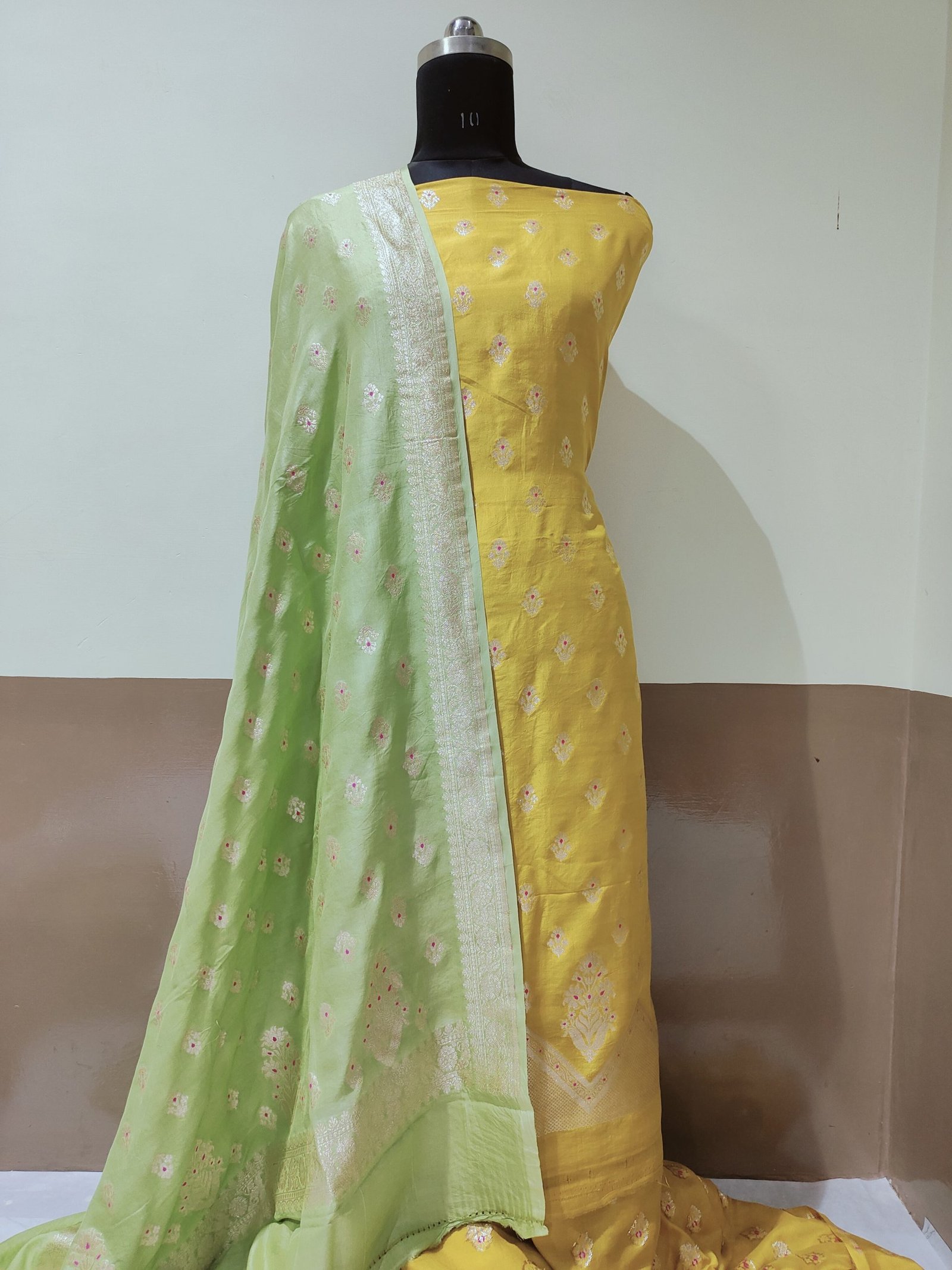Pure Banarasi chiffon khaddi georgette suit-dupatta handloom