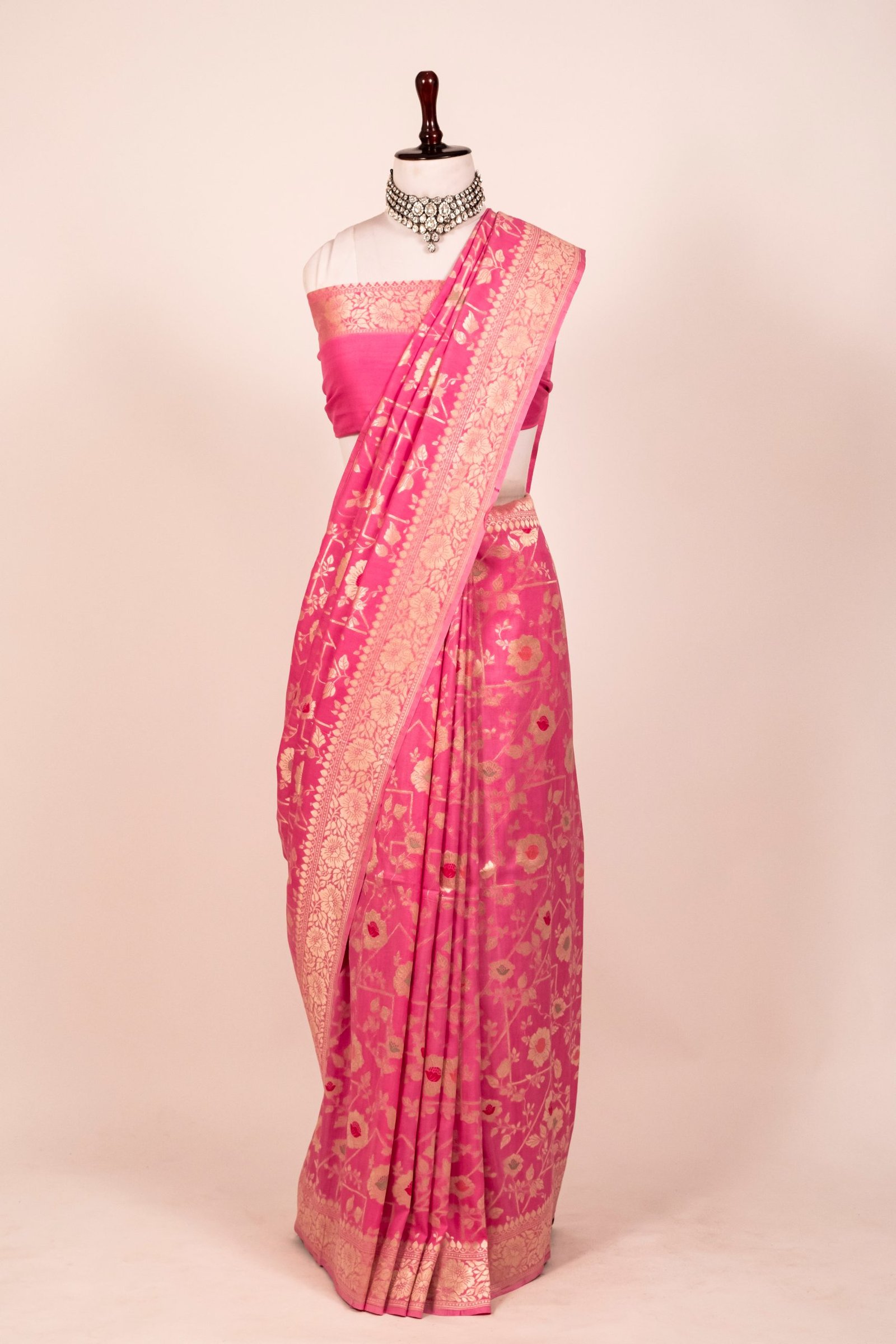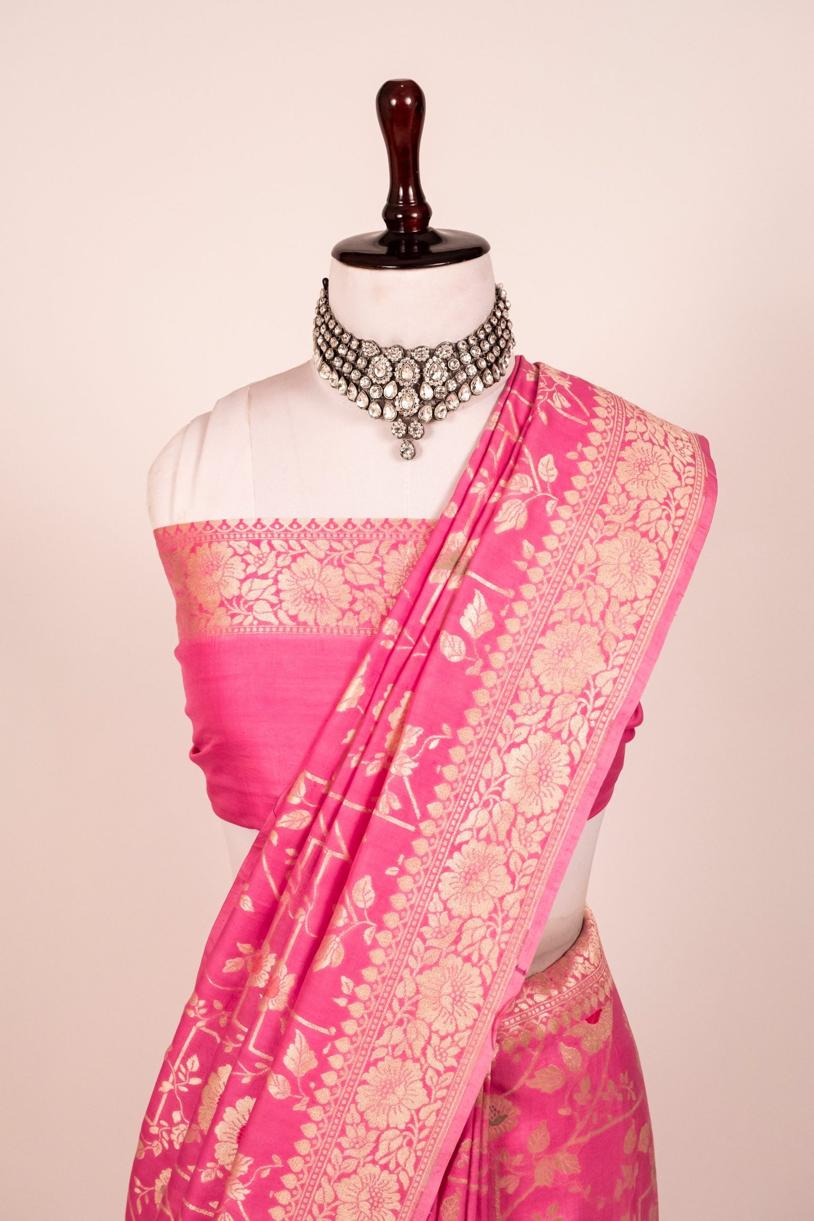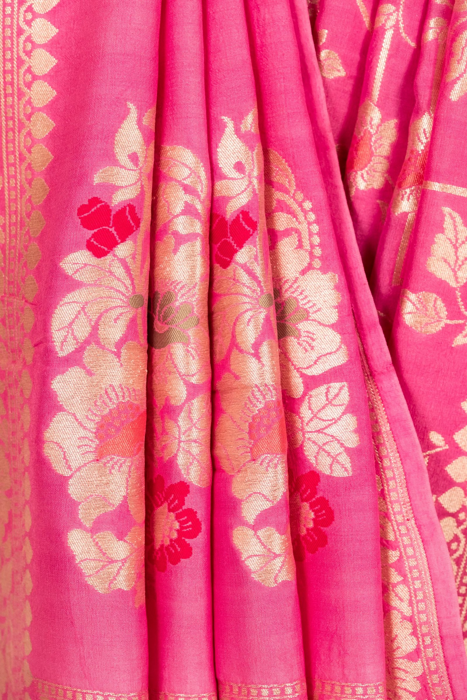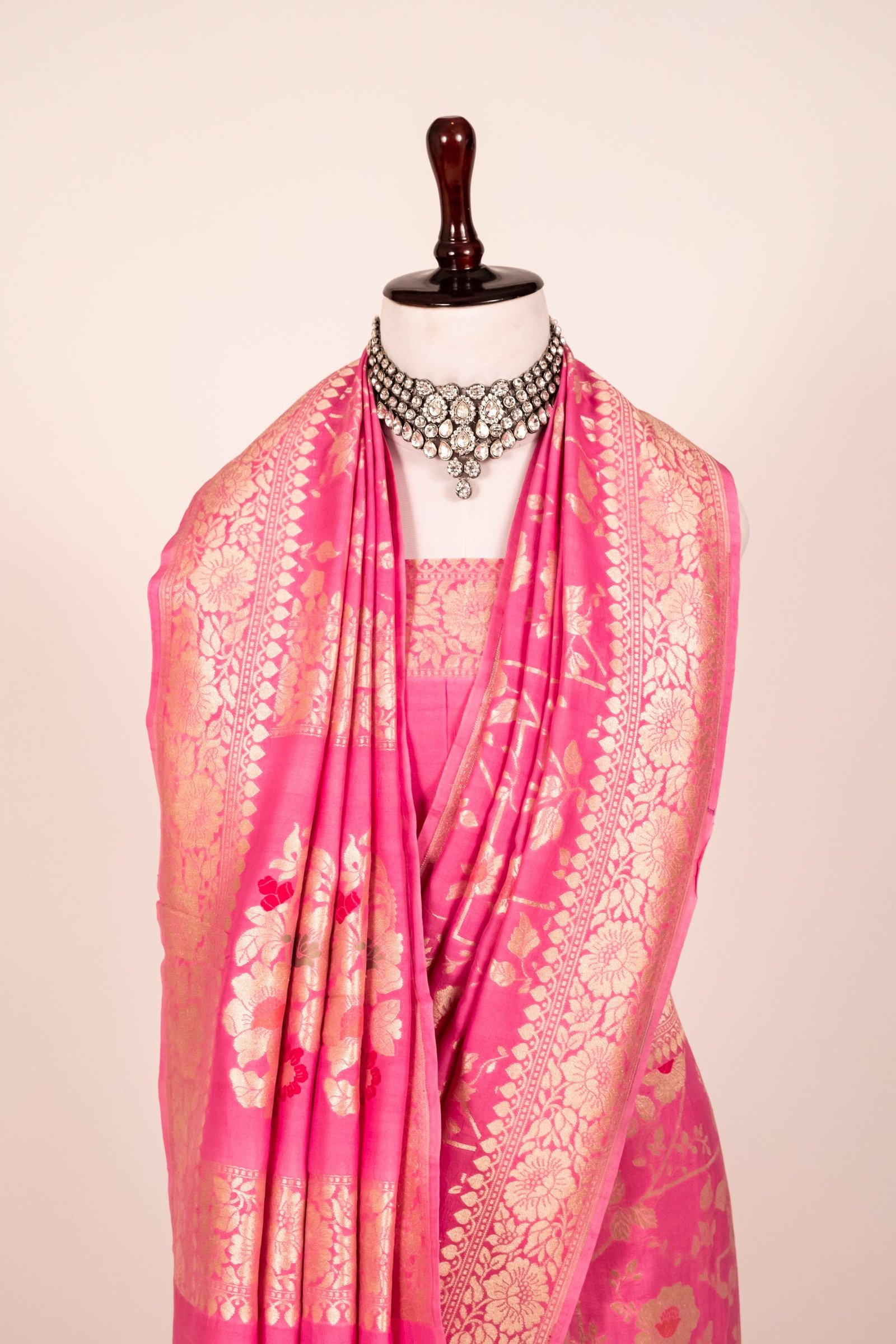 Pure banarasi moonga silk saree cutwork handloom color Rani (Pink)Pure banarasi moonga silk saree cutwork handloom color Rani (Pink)