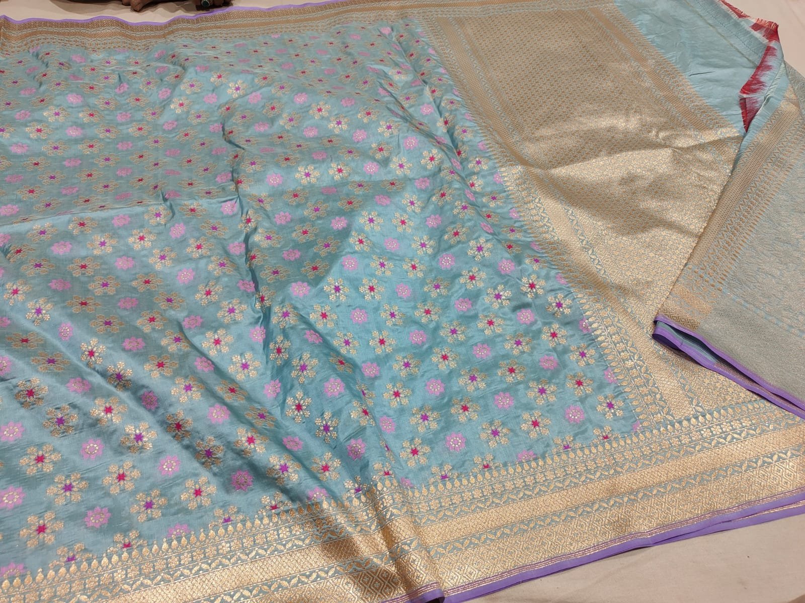 Storage: Store it wrapped in a soft muslin cloth or a cotton saree bag. Avoid plastic covers, as they can cause the Zari to oxidize (turn black).