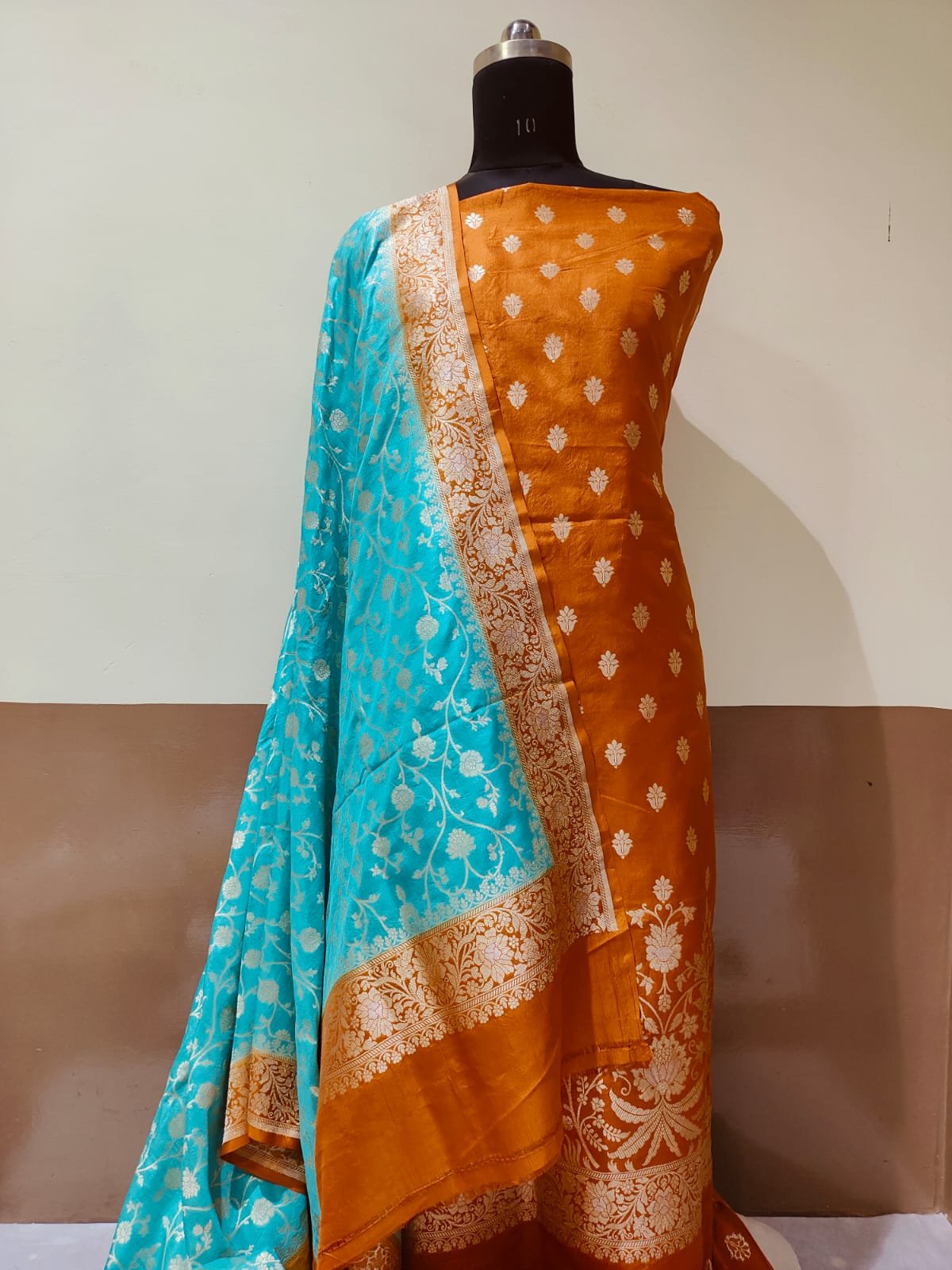 Pure Banarasi Silk Suit-Dupatta with Gold Zari & Meenakari Work (Handloom)