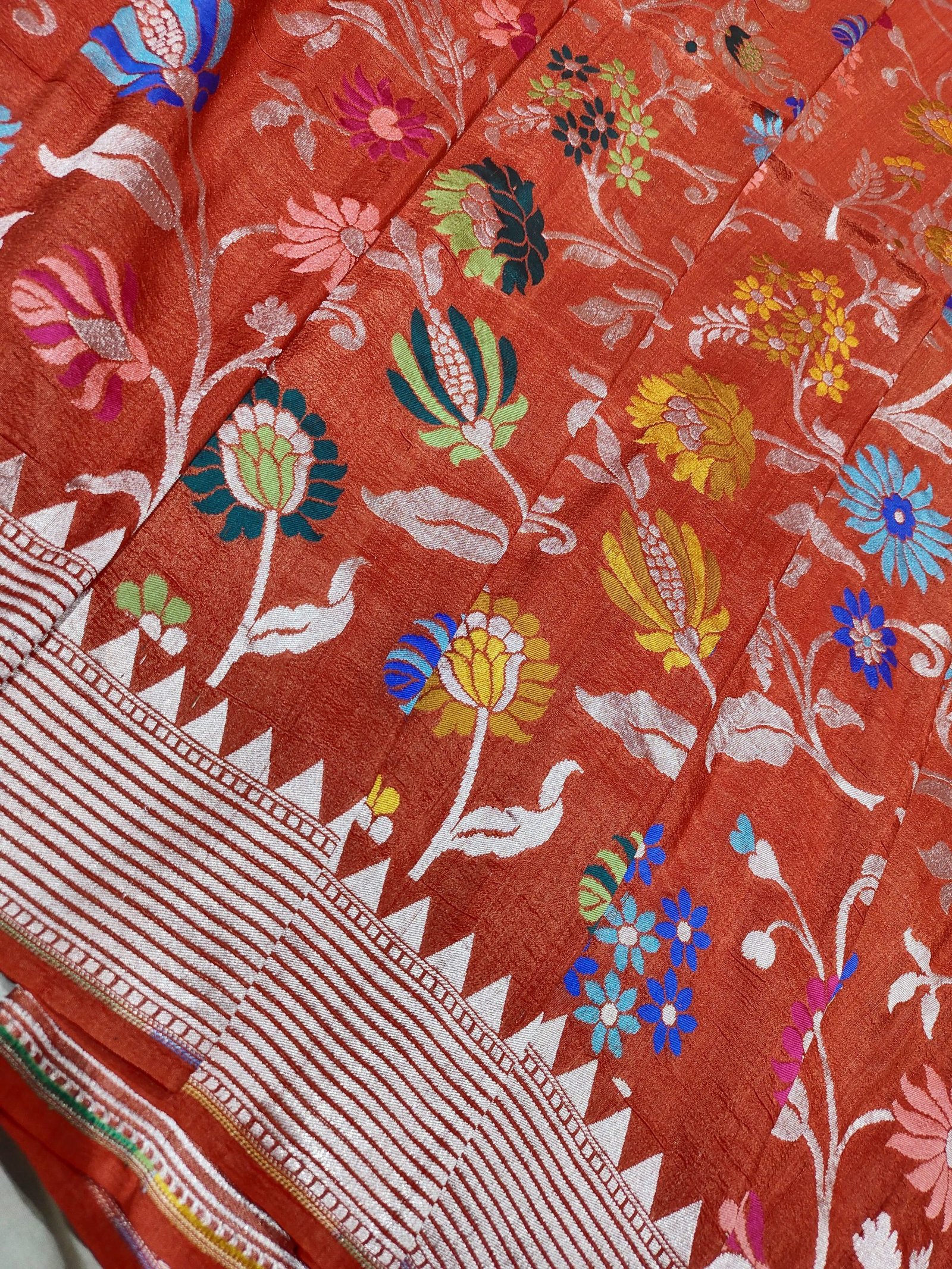 Pure Banarasi Tussar Khaddi Georgette Multi-Colour Meena Kadhuwa Handloom Saree